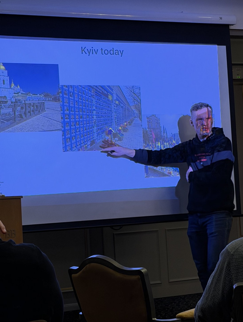 Ole J. Henæs som har bakgrunn fra fra forsvaret, salskaper innen maritim sektor, samt flere internasjonale roller knyttet til utenrikstjenesten og Innovasjon Norge har siden mars 2025 vært Leder for Innovasjon Norges kontor i Kyiv. Han fortalte om hvordan norske bedrifter kan være med å gjenoppbygge Ukraina og hjelpe landet med å forsvare seg. Innovasjon Norge i Ukraina opplever Innovasjon Norge stor pågang fra norsk næringsliv.